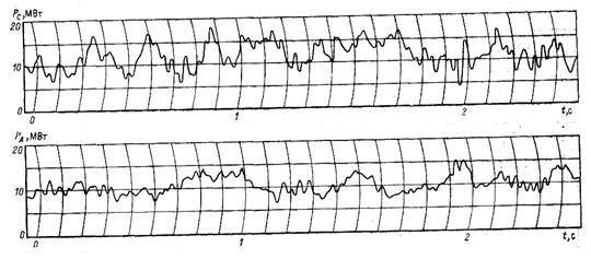 ДСП относятся ко второй категории по надежности электроснабжения. Печи условно разделяются на три группы: - печи малой емкости (0,5–6т) с трансформаторами мощностью 1–3 - печи средней емкости (10–50 т) с трансформаторами мощностью 3–15 - печи большой емкости (80, 100 и 200 г) с трансформаторами мощностью 25—125 В мировой практике наблюдается тенденция увеличения емкости печей до 300–400 т с увеличением мощности печных трансформаторов до 150 В ДСП металлургических заводов выплавляются стали широкого сортамента: от углеродистых до высоколегированных и специальных сплавов. Углеродистые и низколегированные стали выплавляются, в основном, в печах большой емкости, высоколегированные стали – в печах средней и малой емкости. Печи работают непрерывно. Длительные отключения печи происхо-дят только при ее ремонтах. Число же кратковременных отключений в процессе одной плавки достигает несколько десятков. Нагрузка ДСП непрерывно-циклическая. Цикличность работы характеризуется чередованием плавок с остановками печи для слива металла, заправки печи и завалки шихты. Для плавки стали характерны три последовательно проходящих периода: расплавление, окисление, восстановление (рафинирование). Наибольшую мощность ДСП потребляет в период плавления шихты, который по времени длится от 1/3 до 2/3 времени плавки. На рис. 4.5 показан график изменения средней мощности ДСП-100 с трансформаторами мощностью 25 ДСП являются причиной возникновения колебаний напряжения, несимметрии токов и напряжений и несинусоидальности напряжения. Колебания напряжения вызываются колебаниями нагрузки, которые очень значительны, особенно в период расплавления шихты. На рис 4.6 представлены осциллограммы активной и реактивной мощности в фазах питающей сети при работе ДСП с трансформатором мощностью 63
