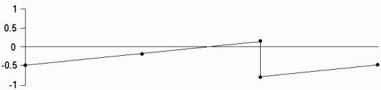 Рис. 10.4. Графік зміни відхилення Приведемо загальний алгоритм Брезенхема, що враховує всі можливі випадки напрямку відрізка, розглянутого як вектор на координатній площині (на мал. 10.6 виділені чотири області й зазначені особливості алгоритму в кожній з них). В описі алгоритму використовуються наступні функції: swap (a, b): обмін значень змінних a, b;abs (a): абсолютне значення a;sign (a): 0, якщо a= 0, 1, якщо a>0, -1, якщо a<0;point (i, j) - ініціалізація крапки (i, j).Передбачається, що кінці відрізка