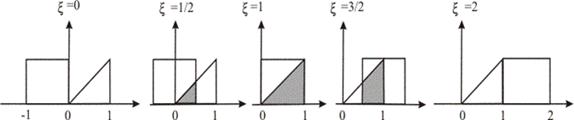Очевидно, що наша згортка дає площа перетинання трикутника, утвореного згортається функцией, що, із квадратом, підстава якого є відрізок