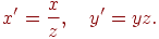 Будемо вважати, що використовується найпростіший випадок перспективного перетворення, що задається формулами
