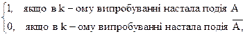 тобто сума ймовірностей значень випадкової величини дорівнює одиниці, отже (4) є законом розподілу. Знайти математичне сподівання M (x) = дуже складно. Тому розглянемо випадкові величини x1, x2, … xn , с однаковим законом розподілу: xk = де k = 1,2,...n. Тоді x = x1 + x2 + … + xn... Використовуючи властивості математичного сподівання одержимо: М (x) = М (x1 + x2 + … + xn) = М (x1) + М (x2) +…+М (xn). Знайдемо математичне сподівання xk , М (xk) = 0 · (1 - p) + 1· p = р, М (x) = np Аналогічно знайдемо дисперсію: D (x) = D (x1 + x2 + … + xn) = D (x1) + D (x2) +…+ D (xn) D (xk) = (0 – p)2 (1 – p) + (1 – p)2 p = p2 (1 – p) + (1 – p)2 p = p (1 - p) (p + 1 - p) = p (1 - p) = p q D (x) = n p q,