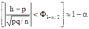 де Якщо розподіл генеральної сукупності не є нормальним, то за вибірками великого обсягу можна побудувати довірчі інтервали для невідомих параметрів приблизно, використовуючи при цьому граничні теореми теорії ймовірностей та асимптотичні розподіли й оцінки, яки з них випливають. Розглянемо приклад. Нехай в n незалежних випробуваннях подія А наступила m раз. Знайти довірчий інтервал для ймовірності р настання події А. Ефективною оцінкою для р є відносна частота Розглянемо статистику z =(h-p)/ P Звідси одержуємо, що з імовірністю