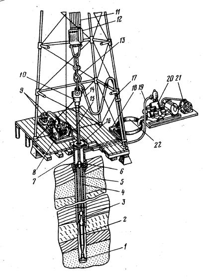 Рисунок 1.3 — Схема установки для буріння нафтових та газових свердловин обертовим способом
