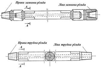Ведучі бурильні труби призначені для передачі обертання бурильної колони від ротора і реактивного моменту від вибійного двигуна до ротора при одночасній подачі бурильної колони та циркуляції промивальної рідини. При бурінні нафтових і газових свердловин застосовують ведучі бурильні труби збірної конструкції, які складаються з квадратної товстостінної штанги, верхнього штангового перевідника (ПШВ) і нижнього штангового перевідника (ПШН) (рисунок 5.5).