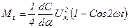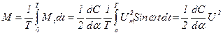 Як видно з останнього виразу, обертальний момент є сумою постійної і гармонічної складових. Відхилення рухомої частини реальних ЕС вимірювальних механізмів під дією на них змінної напруги промислової, а також і більш високих частот, буде визначатися постійною складовою обертального моменту, яку можна записати в такому вигляді: