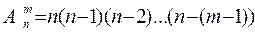Число всіх можливих розміщень із п елементів по т послідовних натуральних чисел, з яких найбільшим є п, визначається за формулою