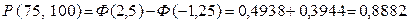 Ймовірність появи події в кожному з 100 незалежних випробуваннях однакова і дорівнює 0,8. Знайти ймовірність того, що подія з’явиться не менше 75 раз і не більше 90 раз.