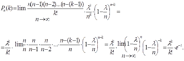 Банк надає кредит населенню і має 1000 клієнтів. Кожному з клієнтів надається кредит 50000 грн. при умові повернення 110% від цієї суми. Ймовірність неповернення кредиту кожним з клієнтів у середньому складає 0,01. Який прибуток гарантується банку з ймовірністю 0,9? Розділ 5.2. Формула Пуассона Нехай виконується п незалежних випробувань в кожному з яких ймовірність появи події А дорівнює р. Для визначення ймовірності появи події рівно k раз в цих випробуваннях використовують формулу Бернуллі. Якщо ж п велике, тоді для визначення ймовірності появи використовують локальну теорему Лапласа. Але ця формула непридатна, якщо ймовірність появи події мала (