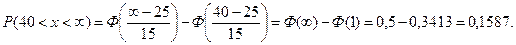 Випадкова величина Х розподілена за нормальним законом. Математичне сподівання і середнє квадратичне відхилення цієї величини відповідно дорівнюють 25 і 15. Знайти ймовірність того, що Х прийме такі значення, що:
