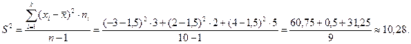 7. Обчислюють вибіркову середню і дисперсію за формулами