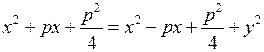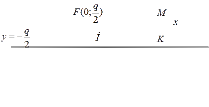 Параболою називають множину всіх точок площини, відстань яких від фіксованої точки F (фокуса) дорівнює відстані від фіксованої прямої (директриси). Нехай Ох проходить через фокус F перпендикулярно до директриси, а початок координат належить посередині, а початок координат лежить посередині між фокусом і директрисою, причому