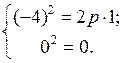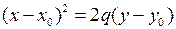 Рис.5 Примітка: Якщо вісь симетрії параболи паралельна одній з координатних осей, а вершина знаходиться в точці М0(х0;у0), то її рівняння має вигляд Приклад 6. Записати рівняння параболи, симетричної відносно осі Ох, що проходить через точки О(0;0) та М(1;-4). Розв’язання. Канонічне рівняння параболи, симетричної відносно Ох має вигляд Одержимо: Зауваження. Для визначення геометричного образу, який описує рівняння виду При цьому слід користуватися наступним: 1) Якщо А і В одного знаку і рівні, то це буде рівняння кола. 2) Якщо А і В одного знаку, але не рівні, то це буде рівняння еліпса. 3) Якщо А і В мають різні знаки, то це буде рівняння гіперболи. 4) Якщо А = 0 або В = 0, то це буде рівняння параболи. Питання для самоконтролю 1. Що називається еліпсом? 2. Записати канонічне рівняння еліпса. Вказати його осі симетрії, вершини, фокуси. 3. Що називається гіперболою? 4. Записати канонічне рівняння гіперболи. Вказати її осі симетрії, вершини, фокуси, дійсну вісь, уявну вісь, асимптоти. 5. Що називається параболою? 6. Записати канонічне рівняння параболи. Вказати її вершину; директрису; фокус; вісь симетрії. 7. Що називається ексцентриситетом еліпса; гіперболи; параболи? 8. Написати загальне рівняння кривої другого порядку на площині. В якому випадку це рівняння являється рівнянням еліптичного типу; гіперболічного типу; параболічного типу? 9. Які фігури визначають рівняння еліптичного типу; гіперболічного типу; параболічного типу? 10. Яка поверхня називається еліпсоїдом? 11. Яка поверхня називається однопорожнинним гіперболоїдом; двопорожнинним гіперболоїдом? 12. Яка поверхня називається еліптичним параболоїдом; гіперболічним параболоїдом? 13. Яка поверхня називається циліндричною? 14. Яку поверхню визначає в R3 рівняння F(x, у) = 0, якщо в R2 це рівняння визначає деяку лінію? 15. Яка поверхня називається конічною? 16. Яка поверхня називається поверхнею обертання? 17. Нехай у площині Оху лінія задана рівнянням F(x, у) = 0. Написати рівняння поверхні, що отримана обертанням цієї лінії: а) навколо осі Ох; б) навколо осі Оу.