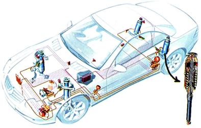 Рис 32. Гідропневматична активна підвіска Сітроен С 5 зі зміною ступеня жорсткості та коефіцієнта демпферування.