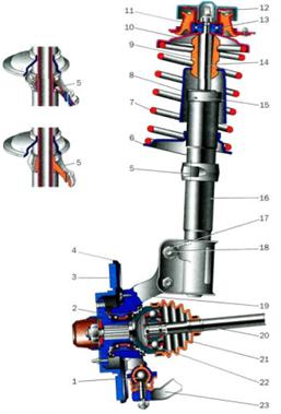 Рис 46. Незалежна кульова підвіска типу Мак Ферсон.