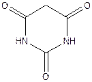 Исследование Ι. Тесты. Группового реактива нет. Все тесты не являются специфичными. Однако некоторые авторы рекомендуют следующие реактивы: А. Концентрированная HCl с бензодиазепинами дает желтое окрашивание. Б. Реактив Циммермана (содержит динитробензол) – красно-пурпурное или фиолетовое окрашивание. ΙΙ. ТСХ. Некоторые вещества в условиях ТСХ нестойки и разлагаются. Системы растворителей для ТСХ: Система А: Хлороформ – 80 Ацетон – 20 Система В: Хлороформ – 90 Метанол – 10 Система С: Циклогексан – 75 Толуол – 15 Диэтиламин – 10 Методы проявления: 1. УФ-свет при 254 нм – темные пятна. 2. 2N H2SO4 /нагревание/ УФ-свет при 366 нм – флуоресцирующие пятна. 3. Подкисленный раствор йодплатината калия – пурпурные пятна. ΙΙΙ. ГЖХ. При использовании этого метода возникает ряд трудностей: многие бензодиазепины термически не стабильны (клоксазолам, кетазолам, лопразолам и др.), некоторые дают несколько пиков (хлордиазепоксид, лорметазепам и др.) или не элюируются (лопразолам) и т. п. Кроме того, индексы удерживания сильно зависят от температуры. ΙV. ВЭЖХ. Трудности связаны с тем, что полностью все вещества разделить не возможно и, кроме того, некоторые вещества не стабильны (например, клоразепат превращается в нордазепам), а также образцы могут содержать примеси мешающие определению. Используются прямые и обращенные фазы. V. Спектроскопические методы. Для анализа бензодиазепинов применяется метод ИК-спектроскопии. Трудности этого метода заключаются в необходимости выделения чистого вещества, а также в том, что бензодиазепины могут образовывать сольваты и обладают полиморфизмом (поэтому стандарт подвергают такой же обработке, что и анализируемый образец). Барбитураты являются производными барбитуровой кислоты (формулу см. ниже):