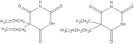 Всего синтезировано порядка 2500 наименований, примерно 50 используется сейчас в медицине. Только 12 барбитуратов занесено в списки. Структурные формулы наиболее распространенных из них приведены ниже.