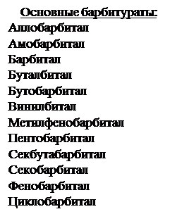 Фенобарбитал Циклобарбитал Барбитураты - группа лекарственных средств, производных барбитуровой кислоты. В терапевтических целях барбитураты используют в качестве снотворных, седативных, анестезирующих и противосудорожных средств. Потребление барбитуратов широко распространено среди наркоманов, пытающихся усилить эффект максимального возбуждения вызываемого героином; либо для снятия ломки, когда иссякают запасы опиатов. В результате потребления барбитуратов быстро возникает толерантность и физическая зависимость.
