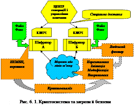 усі шифровані повідомлення, що передаються, а також він знає принципи побудови застосованого криптографічного алгоритму. У загальному випадку стійкість криптографічної системи визначається її здатністю протистояти спробам порушника, що перехопив шифрований текст і, що можливо має інформацію про відкрите повідомлення, відновити власне повідомлення або секретний ключ. Система ненадійна, якщо існують практично реалізовані методи визначення ключа й/або відкритого тексту на основі перехопленого зашифрованого повідомлення. Процеси (спроби) розкриття секретних параметрів криптосистеми й/або відкритого тексту називають криптоаналізом. Об’єктивно, криптостійкість системи залежить від числа її можливих ключів і використаного криптоалгоритму. Якщо довжина ключа в бітах є занадто короткою, то система може бути розкрита шляхом повного перебору (тобто послідовного випробування) усіх можливих ключів, поки не буде знайдений ключ, за допомогою якого перехоплене повідомлення розшифровується як якийсь змістовний відкритий текст. Навіть якщо довжина ключа досить велика, що атака повним перебором нездійсненна, криптосистема може бути вразлива до скороченого розв'язання, яке використовує слабості застосованої математики (алгоритму) системи або деяку лазівку в ній. За деяким виключенням, більшість криптосистем, принаймні, теоретично, уразливе відносно послідовного перебору усіх ключів до моменту знаходження істинного ключу. Зрозуміло, що це можливо лише за допомогою комп’ютеру, за умов його достатньої швидкодії. Наприклад, при довжині ключа 32 біта, існує приблизно 4 мільярди його варіантів. Сучасні суперкомп’ютері мають швидкодію, яка досягає декількох десятків трильйонів операцій в секунду. Вважаючи, що за секунду можна перевірити один мільйон ключів, отримаємо, що для перевірки 4 мільярдів буде потрібно деяким більше години часу. Теоретично не розкривається лише система з одноразовим використанням випадкової ключової послідовності, рівної по довжині переданому повідомленню (ще одна назва по імені автора однієї з перших відомих реалізацій – шифр Вернама). Ключ у такій системі не може бути використаний двічі, у іншому випадку стійкість не може гарантуватися. Для зашифрування послідовність біт повідомлення (у комп'ютері кожен символ представляється 8 бітами) складається побітно із ключовою послідовністю за допомогою функції «додавання по модулю 2» ‑ має позначення