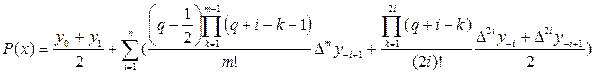 Формула Бесселя використовується для інтерполяції в середині таблиці при значеннях q, близьких до 0.5. Практично вона використовується при 0.25 £ q £ 0.75. Найбільш простий вид має формула при q=0.25, тому що всі члени, що містять різниці непарного порядку, зникають. Формулу використовують для ущільнення таблиць, тобто для складання таблиць з дрібнішим кроком.