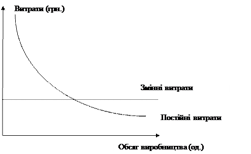 Рис.4.2. - Графічне зображення динаміки постійних та змінних витрат (в розрахунку на весь одиницю продукції)