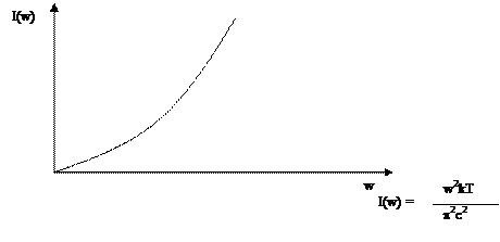 Это явление не укладывается в волновые свойства света. Спектр излучения абсолютно черного тела. Нарисуем зависимость интенсивности света I от его частоты w: