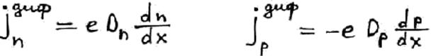 Определяет специфические свойства п/п. Если есть где-то избыточная концентрация электронов или дырок, то они начинают двигаться в сторону уменьшения grad концентрации. Значит, течет ток. Откуда берется дрейфовый ток? Например, можно просто направить на полупроводник пучок электронов. Электронная компонента диффузионного тока/ дырочная компонента диффузионного тока: