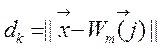 Значение функции соседства для j-го нейрона определяется формулой: