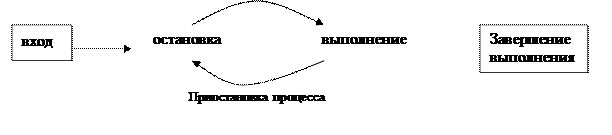 Должны быть определены операции над процессом: 1) используется концепция состояния процесса, в рамках которой предполагается с помощью фиксированных значений, фиксированных состояний описать, как проходит процесс при выполнении 2) для выполнения: любая программа может выполняться или быть приостановлена, из чего возникают соответствующие два состояния процесса !) выполняется, 2) приостановлен.
