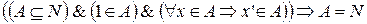 Определение. Натуральными числами назовем элементы множества N, в котором выделен элемент 1. 2. 3. Аксиомы 1-3 будем называть аксиомами Пеано. Следствия из аксиом Пеано: 1) 2) Доказательство. Предположим, что 3) Доказательство. Пусть 4) Доказательство. Пусть 5) І форма метода математической индукции для множества натуральных чисел: Если утверждение