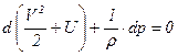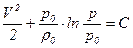 Последнее выражение есть интеграл Бернулли для баротропного движения. Интеграл Бернулли для одномерного баротропного движения при отсутствии массовых сил имеет вид