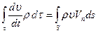 Очевидно, что второй интеграл в правой части обращается в нуль, так как при стационарном движении сжимаемой жидкости Пользуясь формулой Остроградского - Гаусса для связи интегралов по поверхности s и по объему
