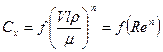 Рис. 1. Зависимость коэффициента сопротивления от числа Рейнольдса Re