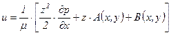 Так как из третьего уравнения видно, что давление не зависит от координаты z, то интегралы первого и второго уравнений будут