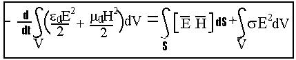 Используя уравнения Максвелла, баланс энергий электрического и магнитного поля в течение некоторого времени в пределах некоторого объёма V, ограниченного поверхностью S, можно представить в виде уравнения Умова-Пойнтинга: Левая часть уравнения характеризует расход энергии электромагнитного поля за единицу времени. Правая часть уравнения: Ø Первое слагаемое представляет собой поток энергии в окружающее пространство через замкнутую поверхность S объёма V за отрезок времени t. Ø Второе слагаемое выражает энергию в соответствии с законом Джоуля-Ленца, которая преобразуется в тепло внутри объёма V за единицу времени. Таким образом, любое изменение энергии электромагнитного поля связано или с преобразованием этой энергии в тепло, или с излучением её в окружающее пространство.