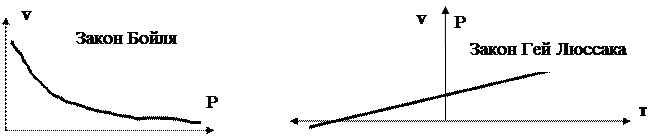 Рис. 18 Графики давления и объема газа для закона Бойля-Мариотта (слева) и Гей Люссака