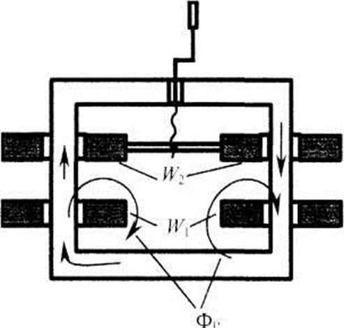 Регулирование потока рассеяния магнитного поля в данном случае происходит за счет изменения длины и сечения элементов магнитного пути между стержнями магнитопровода. Т.к. магнитная проницаемость железа на 2 порядка больше, чем проницаемость воздуха, при движении магнитного шунта меняется магнитное сопротивление потока рассеяния, проходящего по воздуху. При полностью введенном шунте волна потока рассеяния и индуктивное сопротивление определяется воздушными зазорами между магнитопроводом и шунтом.