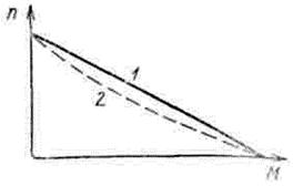 Рис. 31. Механические характеристики вентильного двигателя: 1 — без учета индуктивности секции; 2 — с учетом индуктивности