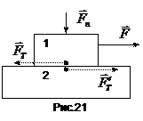 3.Сила тертя. Сили тертя виникають при відносному переміщенні тіл, що дотикаються, або між частинами одного тіла. Тертя, що виникає при ковзанні одного тіла по поверхні другого, називається зовнішнім, а тертя між частинами одного і того ж тіла (наприклад, рідини або газу) називається внутрішнім. Силу тертя, що виникає між твердим тілом і рідиною або газом слід віднести до внутрішніх сил, оскільки шари рідини, що дотикаються до тіла, прилипають до нього і рухаються із швидкістю самого тіла, а на рух тіла буде впливати тертя між цими і зовнішніми по відношенню до них шарами рідини (газу). Тертя між поверхнями двох твердих тіл, при відсутності мастила між ними, називається сухим. До сухого тертя відносяться сили ковзання та кочення. Тертя між твердим тілом і рідиною або газоподібним середовищем, а також між шарами такого середовища називається в’язким. Сили тертя діють вздовж дотичної до поверхонь (або шарів), які рухаються з відносними швидкостями, причому направлені так, що протидіють відносному зміщенню цих поверхонь (шарів).