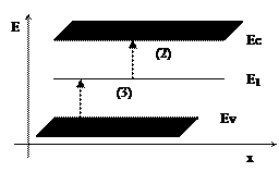 Рассмотрим подробнее возникновение ННЗ вследствие оптического поглощения (внутренний фотоэффект). Возникновение ННЗ проявляется в изменении электрической проводимости полупроводника, и это явление называется фотопроводимостью. Электронные переходы при оптической генерации могут быть различными. Обозначим возможные переходы в полупроводниках под действием света на энергетической зонной диаграмме: