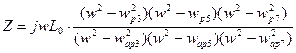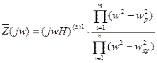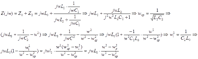 Н-параметр который определяет поведение схемы при частоте стремящейся к бесконечности. Если характер индуктивности при частоте стремящейся к бесконечности то берем +, если емкостной характер то -. В числителе записано произведение разности квадрата текущей частоты и квадрата резонансной частоты. Этих произведений будет столько, сколько резонансных частот. В знаменателе записано произведение разностей квадрата текущей частоты и анти резонансной частоты, этих произведений будет столько, сколько анти резонансных частот. Число сомножителей в числителе и знаменателе должно быть одинаково, поэтому в ту часть где меньше, домножают на