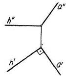 Рис. 3.14 Далее известно, что АА' L Н, значит АА' 1АЪ', прямые АВ нАЪ' - параллельны, значит АВ 1 АА'. Таким образом, прямая АВ X АА' и АВ 1 АС, т. е. она перпендикулярна к двум прямым плоскости у, значит она перпендикулярна плоскости у. Но тогда А Ъ' как параллельная АВ, также перпендикулярна плоскости у, а значит она перпендикулярна к любой прямой этой плоскости, в частности, ЛВ'А'С- прямой, т. е. теорема доказана. Применяя полученные выводы к проекциям на комплексном чертеже можно сформулировать такие условия: две взаимно перпендикулярные прямые тогда и только тогда сохраняют перпендикулярность на горизонтальной проекции, когда, по крайней мере, одна из них горизонталь.