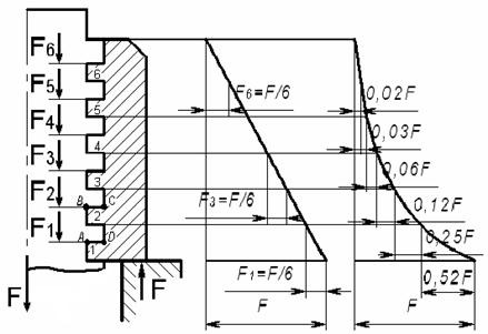 Распределение осевой нагрузки винта по виткам резьбы