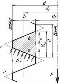 где Н – высота гайки или глубина завинчивания винта в деталь; К=ab/p или К=ce/р – коэффициент полноты резьбы; Кm – коэффициент неравномерности нагрузки по виткам.