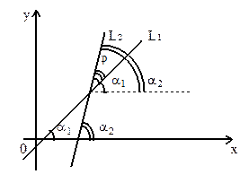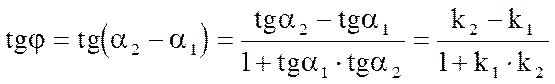 Т.е. угол между прямыми L1 и L2 определяется по формуле: