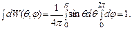 Выберем некоторое направление, характеризуемое углами θ и φ сферической системы координат (см. рис. 1.1). Пусть нас интересует доля молекул, движущихся именно в этом направлении. Вообще говоря, несмотря на огромное количество молекул, вероятность найти молекулу, движущуюся строго в данном направлении, равна нулю, так как направление задается бесконечно узкой линией, а число молекул все-таки конечно. Можно говорить только о вероятности иметь направление в интервалах углов от θ до θ + dθ и от φ до φ + dφ. Чем меньше dθ и dφ, тем точнее задается направление. Указанные две пары углов задают в пространстве четыре радиус-вектора, которые на единичной сфере (см. рис. 1.1) определяют вершины криволинейного четырехугольника малой площади dS = sin θ dθ dφ = dΩ, где dΩ – элемент так называемого телесного угла. Вероятность попадания единичного вектора, направленного вдоль вектора движения молекулы, именно в данный элемент поверхности есть отношение этой площади к полной площади поверхности единичной сферы (равной 4 π):