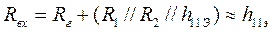 Используя эквивалентную схему, аналитическим путем определим основные параметры резисторного каскада: К, Кi, Rвх, Rвых. Входное сопротивление