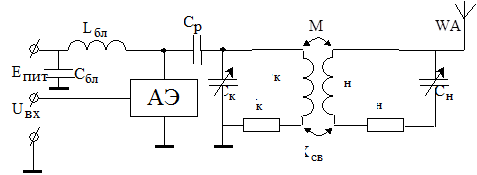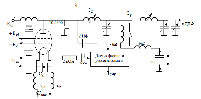 Схема колебательной системы усилителя мощности передатчика МОЛНИЯ - 3