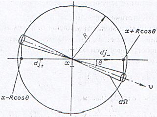 Встречные потоки частиц из двух противостоящих друг другу точек, лежащих на сфере радиуса R (см. рис. 6.2), равны: