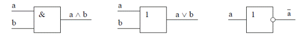 Пример 1. На вход элемента «И» подали сигналы a = 1 и b = 0. На выходе будет сигнал «0», поскольку a b = 1 0 = 0 (см. таблицу истинности для конъюнкции). Пример 2. На вход элемента «ИЛИ» подали сигналы a = 1 и b = 0. На выходе будет сигнал «1», поскольку a b = 1 0 = 1 (см. таблицу истинности для дизъюнкции). Пример 3. На вход элемента «НЕ» подали сигнал a = 1. На выходе будет сигнал «0», поскольку a = 1 = 0 (см. таблицу истинности для инверсии). Логические элементы «И-НЕ» и «ИЛИ-НЕ» В технике также широко применяются сдвоенные логические элементы «ИЛИ-НЕ» и «И-НЕ».