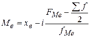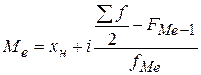 Для расчета медианы в интервальном ряду воспользуемся следующими формулами: